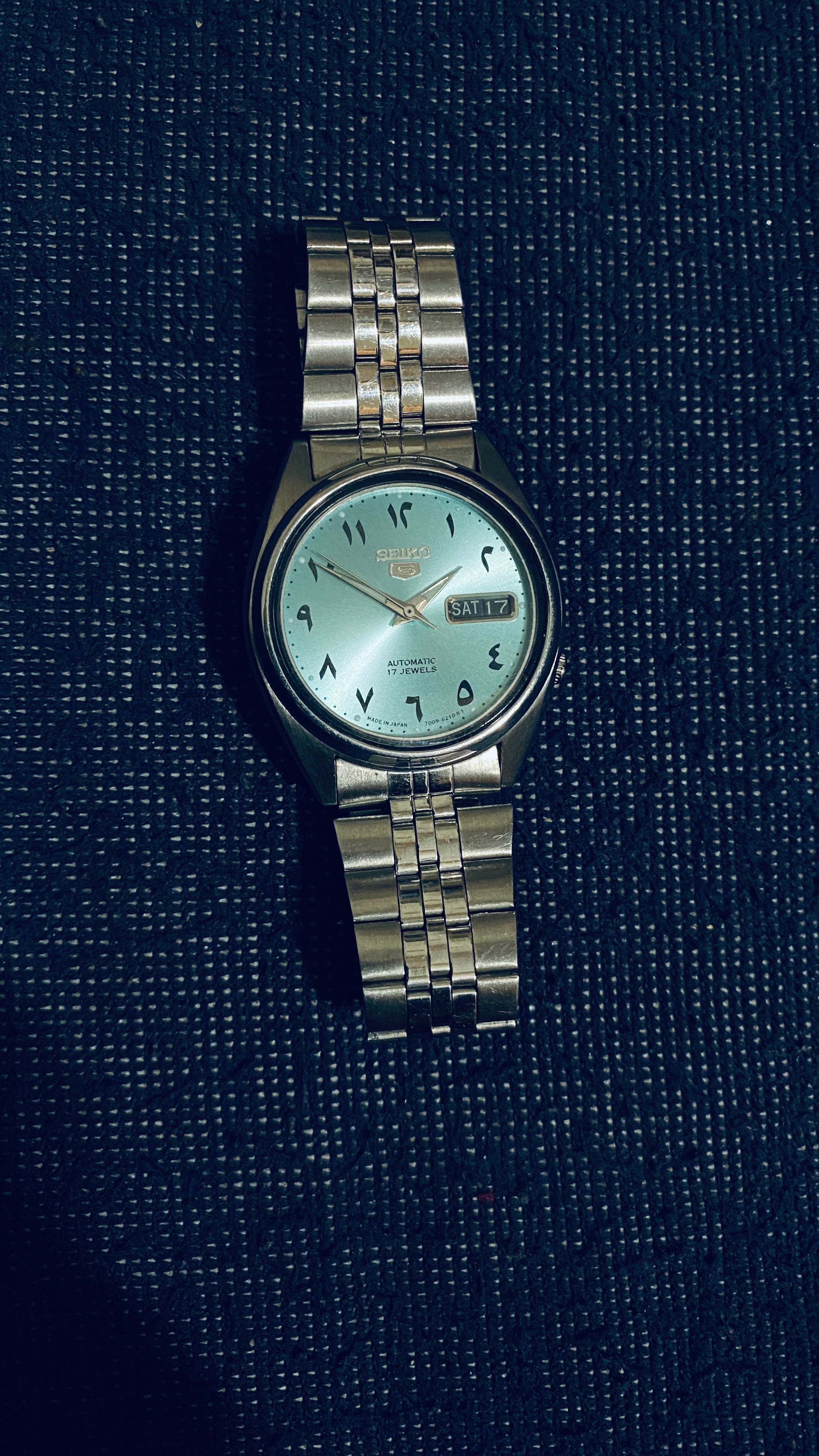 Seiko mode  movement 7009 Japan  day and date  Arabic dial  radium  stainless steel material  dial size 39mm  condition new come with normal box
